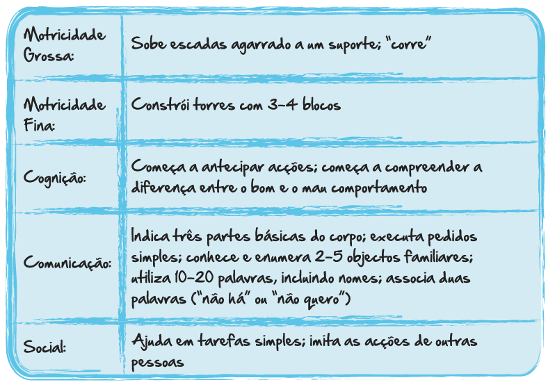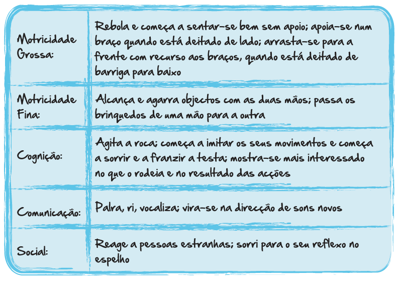 As páginas seguintes mostram de que forma os bebés prematuros habitualmente se desenvolvem, de acordo com a idade corrigida (idade ajustada). Utilize-as como guia geral para seguir os progressos do seu filho. Algumas crianças podem saltar algumas etapas, o que pode ou não afectar posteriormente a sua capacidade de aprendizagem. É importante entrar em contacto com o seu médico de família, pediatra ou especialista em desenvolvimento infantil caso observe áreas em que o seu filho esteja menos desenvolvido.