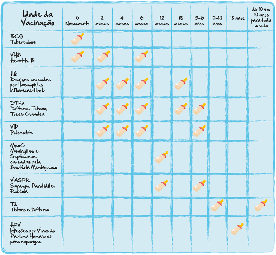 Os bebés necessitam de diferentes vacinas em diferentes idades, de forma a ajudar a protegê-los contra doenças graves. É importante que as crianças sejam imunizadas no calendário previsto, que assenta na data de nascimento do bebé (e não na idade corrigida ou ajustada). Para mais informação, contacte o seu médico ou o centro de saúde.